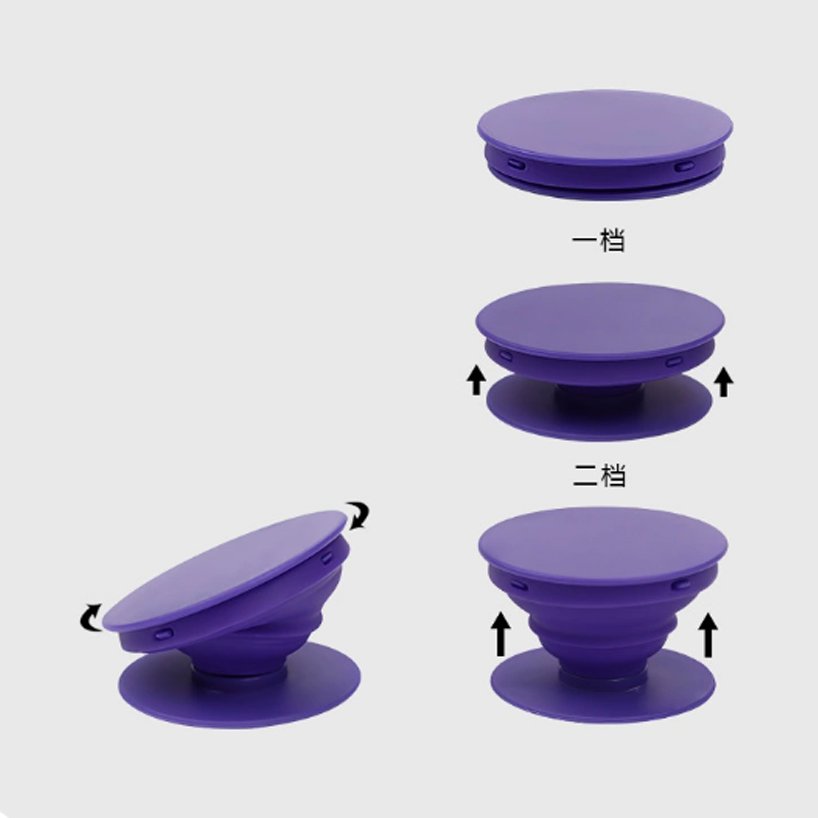Simply expand the grip to use it as a stand and collapse it when not in use.